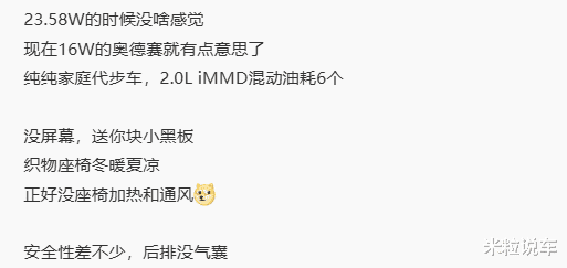 总的来说,这款本田奥德赛已经减配到了极致,甚至毫不夸张地说已经没有什么可以失去的了,该新车现在的定义就是一款工具用车,价格倒是便宜。如果你真的很喜欢双擎的低油耗,需要不错的空间,同时对智能驾驶系统,可玩性的乐趣以及车载配置没有需求的,不妨考虑一下这款低配的本田奥德赛,但是肯定需要大幅改装一下,否则真的没法开!毕竟连收音机,倒车影像都没有,太影响使用了。